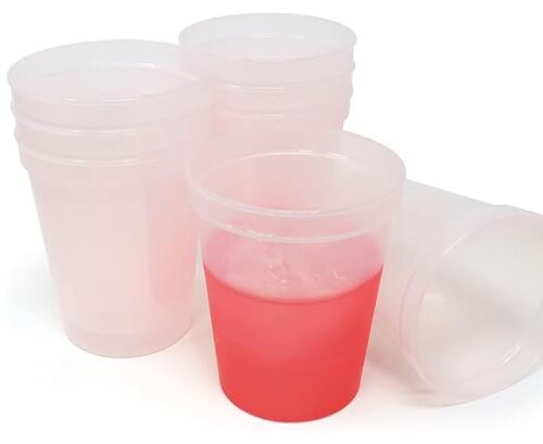 Amazon also has these cups that turn from "frost" to red when you pour cold liquid into them. Disclaimer, I bought these last year, and they're more a very pale pink rather than white. Still super cool, and they actually worked perfectly to hold all the other plague goodies, and all the kids loved them!