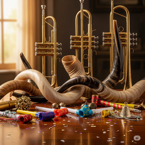 Okay, you might not be a trumpet player or own a shofar. Get some party horns, and make a joyful noise to The Lord. Blast some music and have a great time!